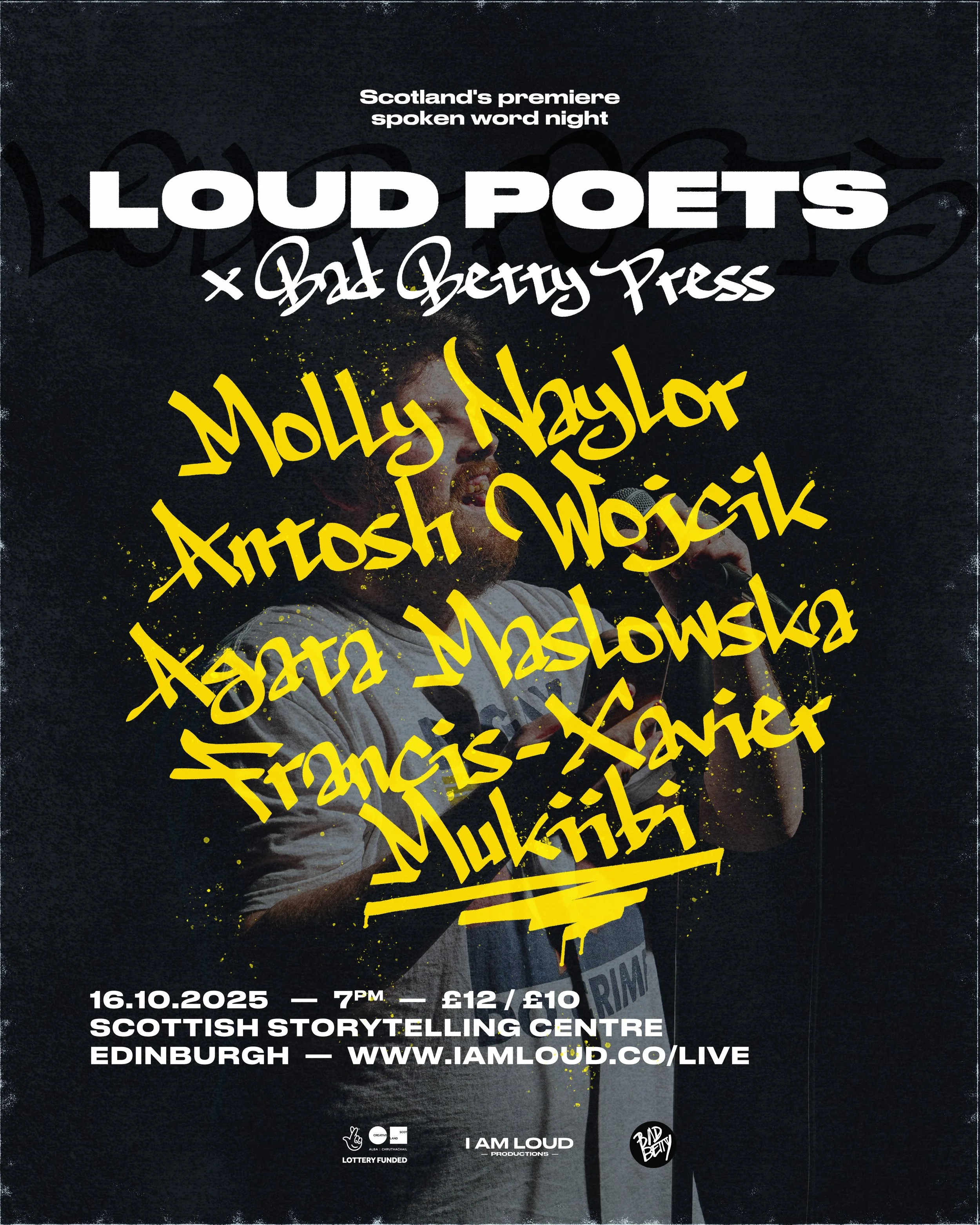 I Am Loud started in 2014 as Loud Poets, a live spoken word poetry showcase. Since then we have grown into a multidisciplinary production and entertainment company while keeping live events at the heart of our work. From monthly showcases at the Scottish Storytelling Centre to open mics, tours, and festival performances, I Am Loud showcases the best of spoken word wherever we go. Learn more about our live events below.