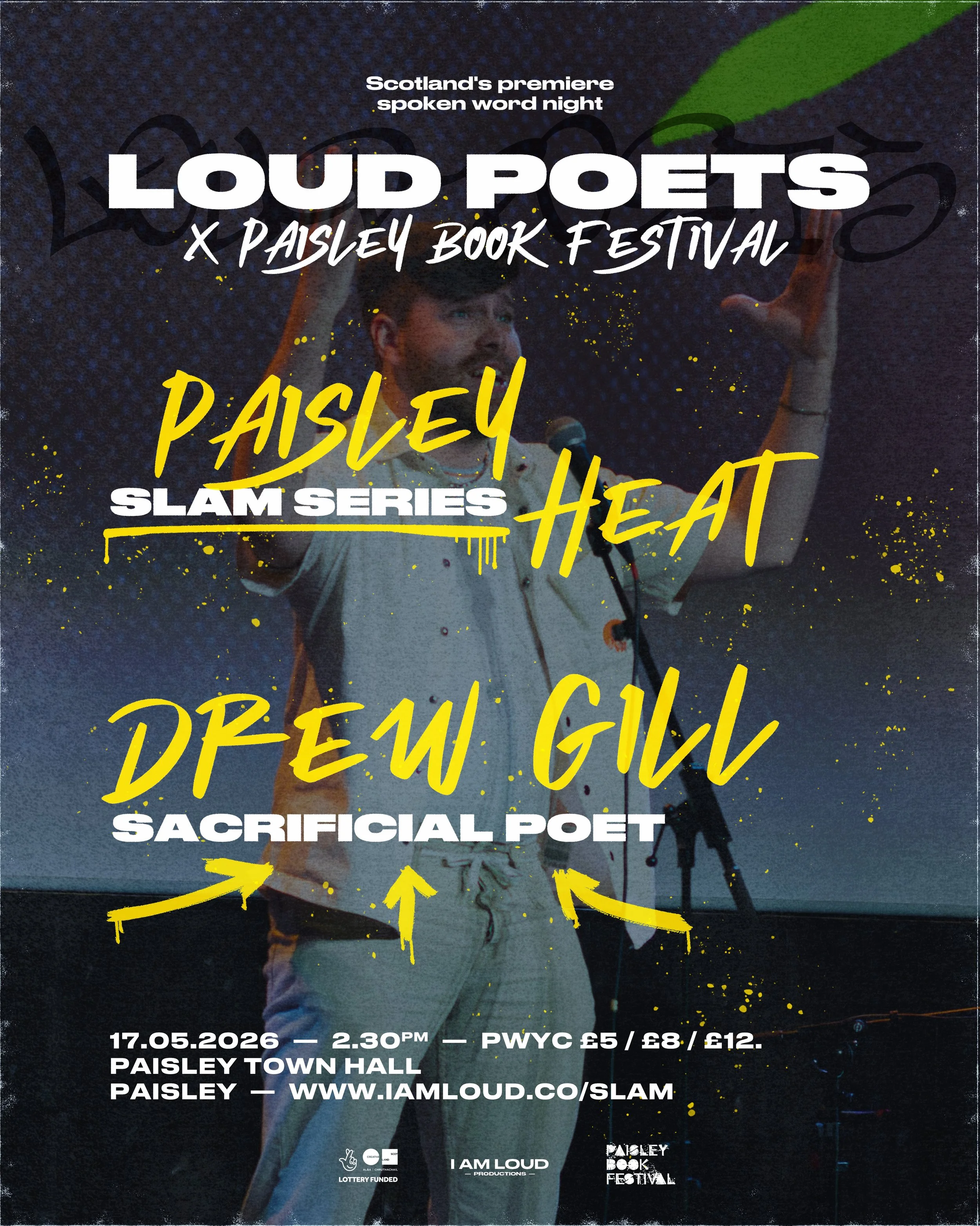 Loud Poets are partnering with festivals and venues across the UK to find and celebrate the best in spoken word. We’re partnering with some incredible organisations including Push The Boat Out, VERVE Poetry Festival, StAnza: Scotland’s International Poetry Festival, Paisley Book Festival, UP YER AIRTS, Aberdeen Performing Arts, Process Productions, and Bradford Literature Festival. Stay tuned for details on all of our upcoming Slam Heats signing up to our newsletter.